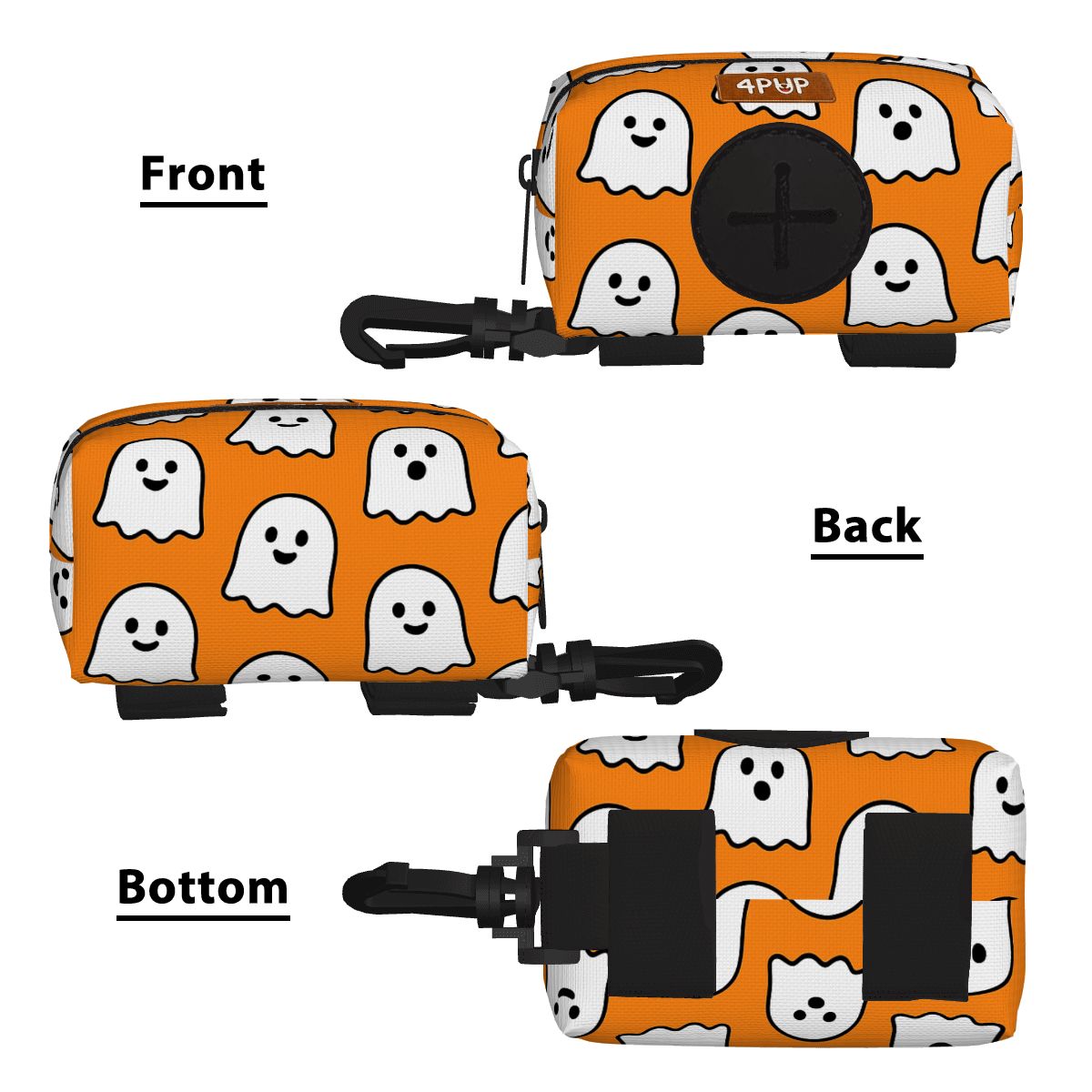 Includes: Main zippered pocket, front dispenser, Velcro straps, and lobster clasp.
