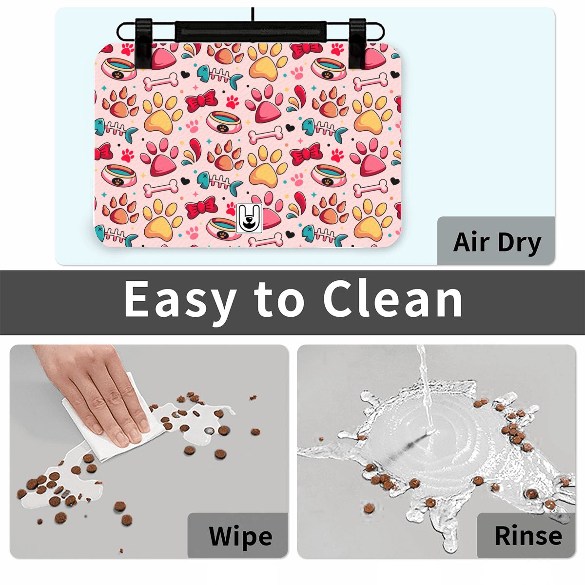 End mealtime madness with the 4PuP Dog Food Mat! This essential barrier is made from food-grade silicone, making it 100% waterproof and a breeze to clean. The non-slip surface keeps bowls in place, while the raised lip locks in spills, drool, and crumbs. Protect your floors and simplify cleanup with the perfect dog bowl mat.