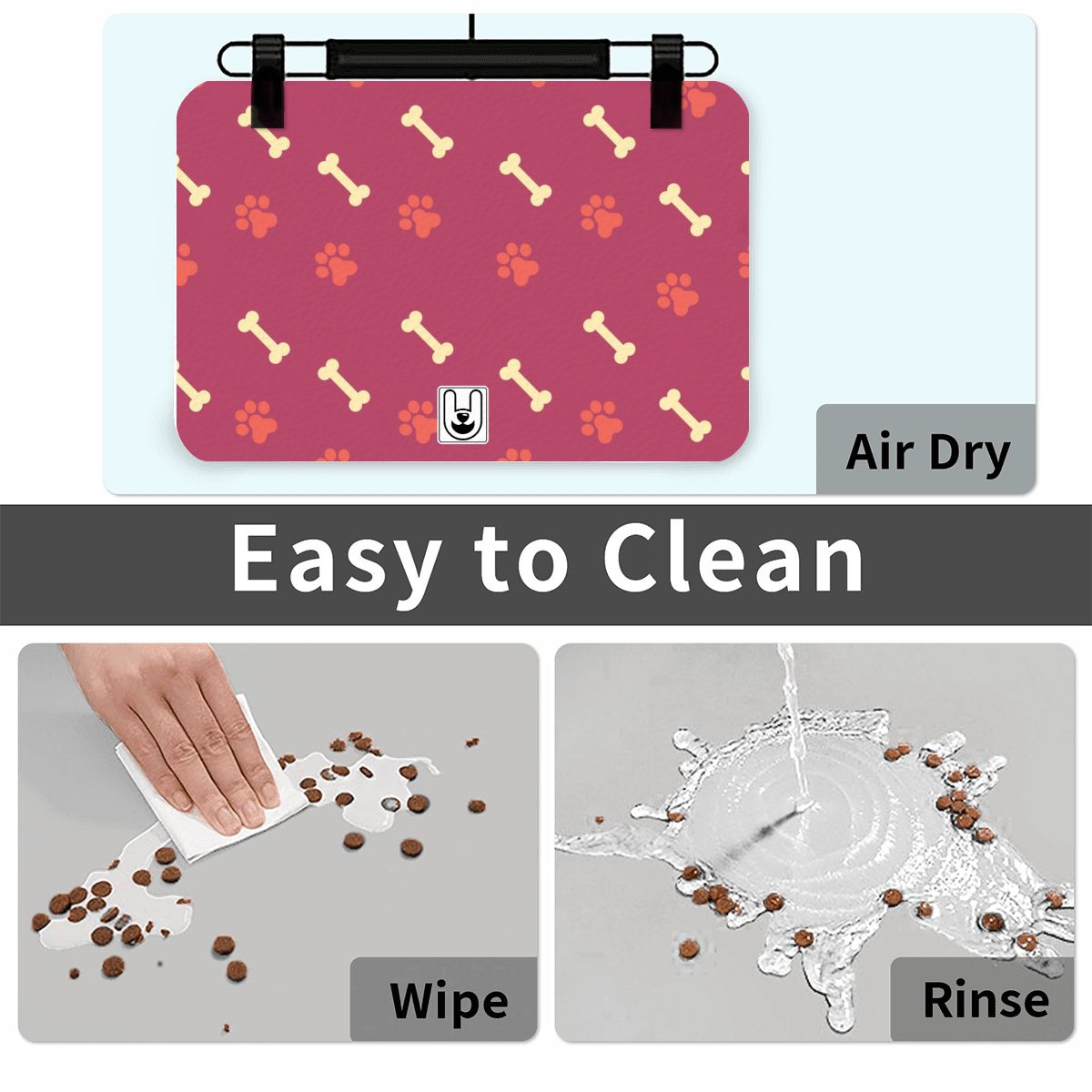 End mealtime madness with the 4PuP Dog Food Mat! This essential barrier is made from food-grade silicone, making it 100% waterproof and a breeze to clean. The non-slip surface keeps bowls in place, while the raised lip locks in spills, drool, and crumbs. Protect your floors and simplify cleanup with the perfect dog bowl mat.